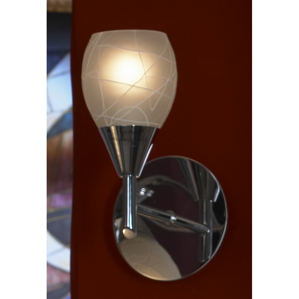 Светильник настенный, металлический, цвет покрытия - хром, плафон из матового стекла. Площадь освещения 2 кв.м. Используется в качестве дополнительного освещения. Способ крепления: монтажная пластина прикручивается к стене. В комплекте: гарантийный талон, схема сборки, монтажная пластина и крепежные саморезы. Гарантия 1 год.