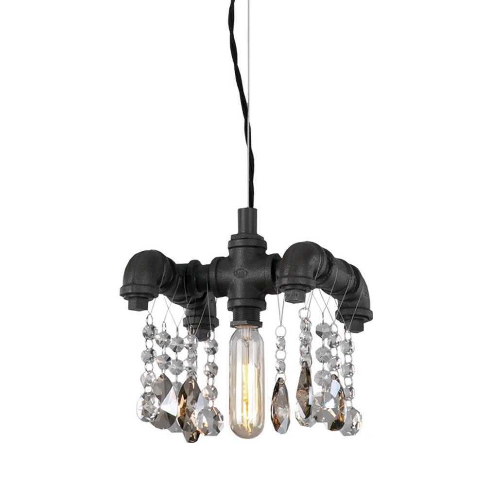 Светильник потолочный, металлический, цвет покрытия - коричневый. Плафон из металла и подвесных украшений из прозрачного стекла. Светильник выполнен в стиле "Лофт". В светильнике используется 1 лампа накаливания на 40 Вт, площадь освещения 2 кв.м. Способ крепления: к монтажной пластине. Есть возможность регулировки высоты. В комплекте: стилизованная лампа накаливания, гарантийный талон, монтажная пластина, схема сборки. Гарантия 1 год.