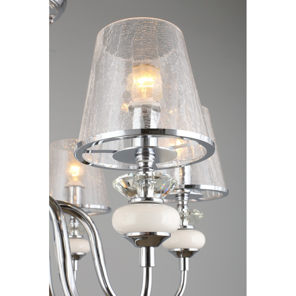 Визитная карточка коллекции Aviano – блестящий зеркальный хром в сочетании с благородным прочным металлическим основанием. Это специфичное представление классики, чтобы отвлечь внимание от мебели и одновременно придать белоснежному потолку величественную красоту. Изысканные люстры декорированы прозрачными плафонами из сверкающего стекла, что позволяет не задумываться над подбором элементов декора.